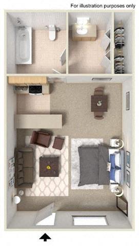 Studio - Floorplan 1 Apartment Unit: 326Apartment Model: Studio$835Studio, 1 Bath, 340 sq ftAvailable Now1 Bedroom