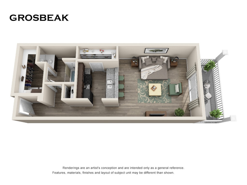 Apartment Model: Grosbeak$1,220Studio, 1 Bath, 617 sq ftUnavailable![]()
