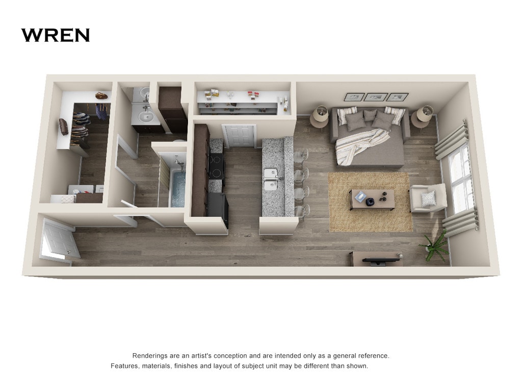 Apartment Model: Wren$1,170Studio, 1.5 Bath, 573-583 sq ftUnavailable![]()