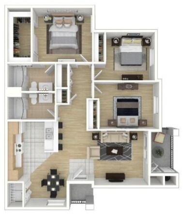 Apartment Model: Three BedroomFrom $1,4993 Bedroom, 2 Bath, 1108 sq ftAvailable Now![]()