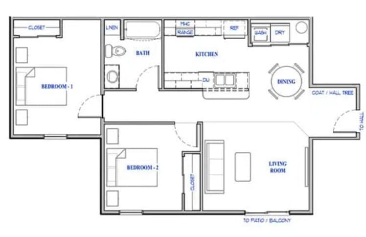Apartment Model: Aspen$1,1752 Bedroom, 1 Bath, 1079 sq ftAvailable Now![]()