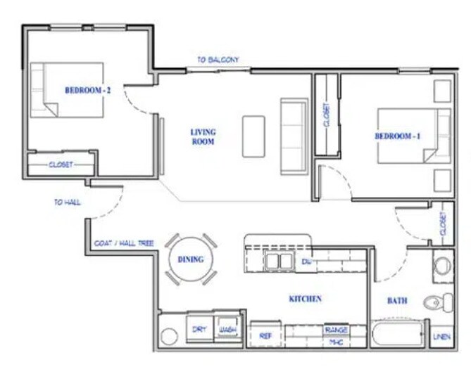 Apartment Model: Willow$1,1002 Bedroom, 1 Bath, 1056 sq ftAvailable Now![]()