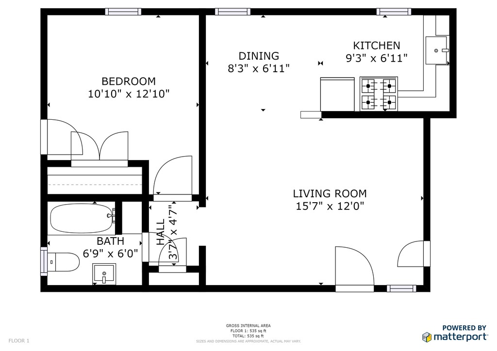1 Bed, 1 Bath, 535 sq ftAvailability Details