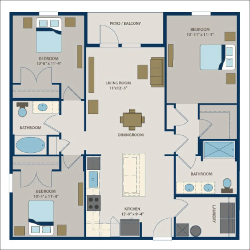 3 Beds, 2 Baths, 1248 sq ftModel Gallery