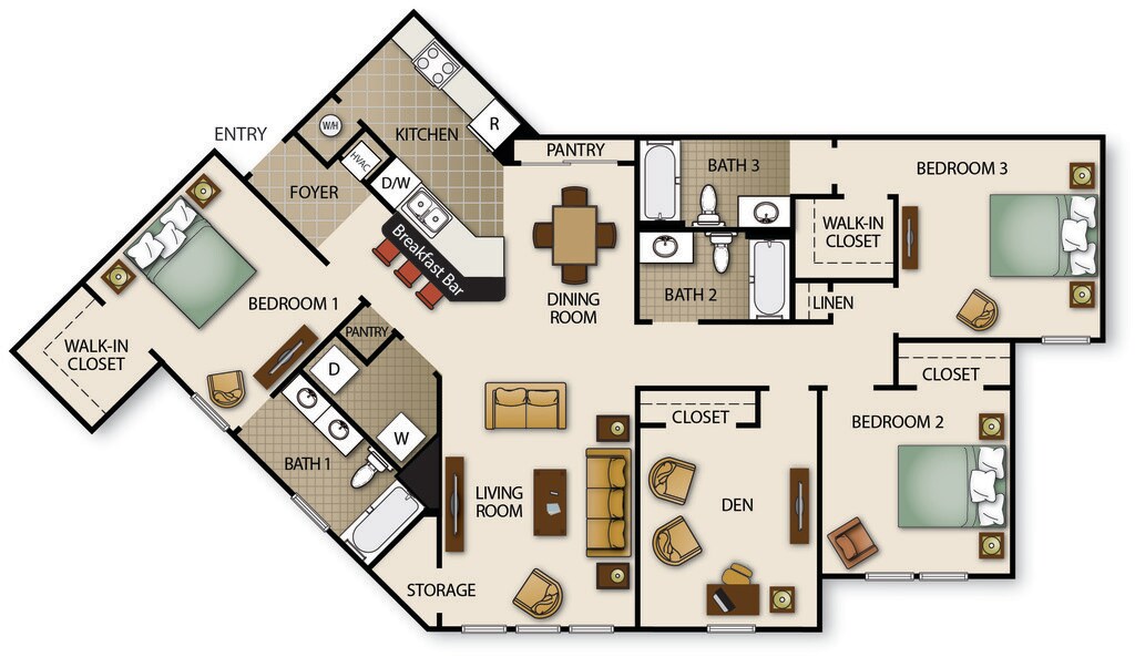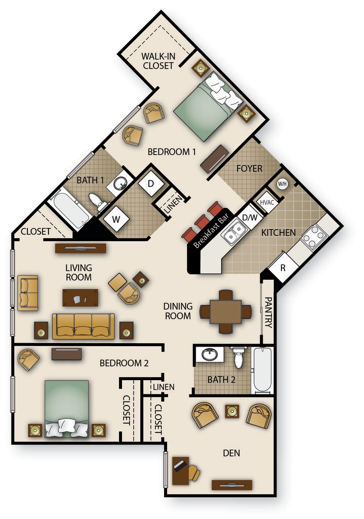 Two Bedroom w/ Den Two Bath (b) - Floorplan 1 Two Bedroom Two Bath
