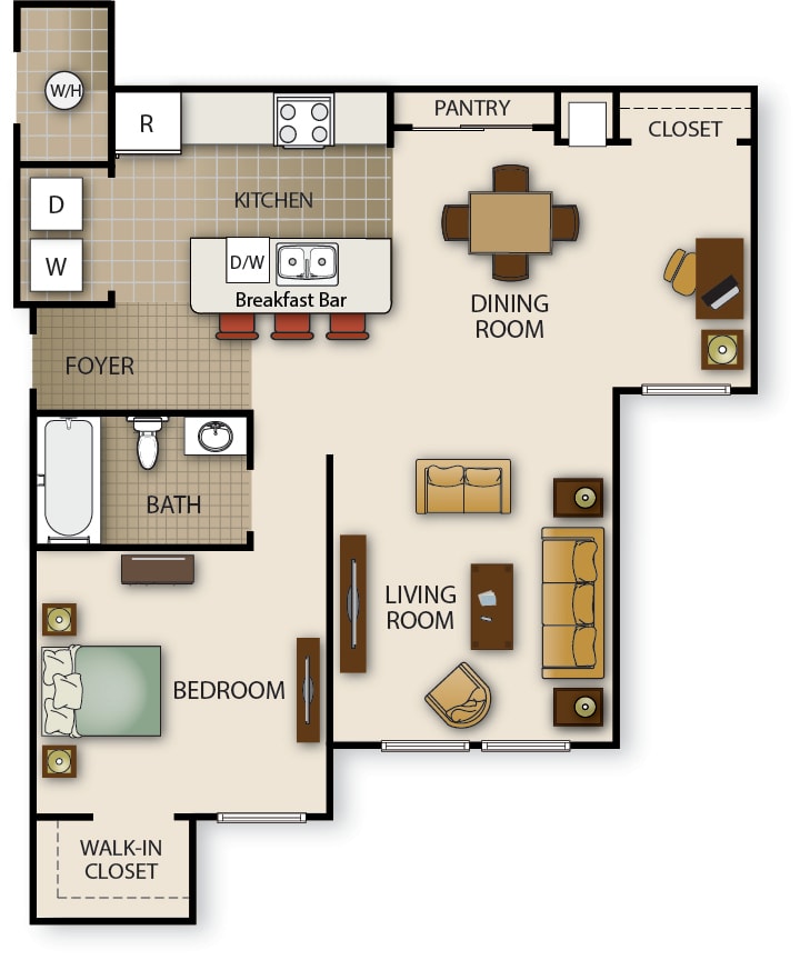 1 Bed, 1 Bath, 681 sq ftAvailable NowModel Gallery