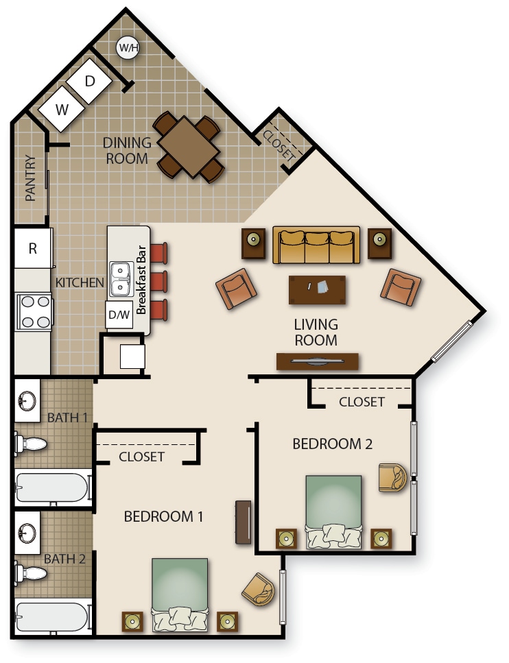 2 Beds, 2 Baths, 1206 sq ftAvailable NowModel Gallery