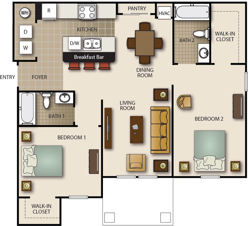 Two Bedroom Two Bath (b) - Floorplan 1 Two Bedroom Two Bath
