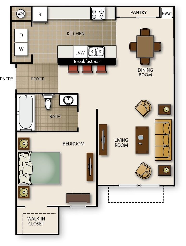 1 Bed, 1 Bath, 681 sq ftAvailable NowModel Gallery