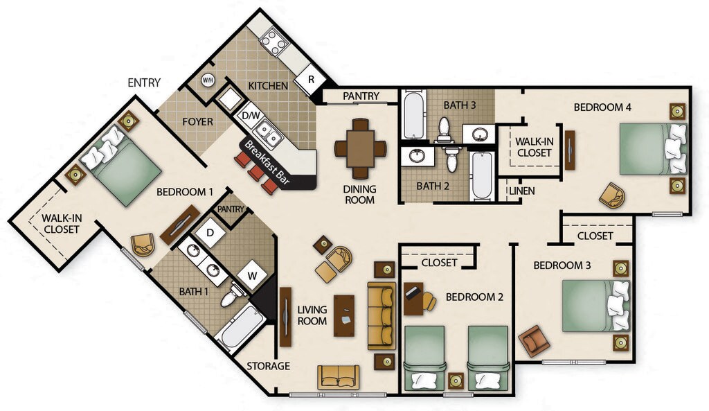 One Bedroom One Bath - Floorplan 1 2 Bedrooms