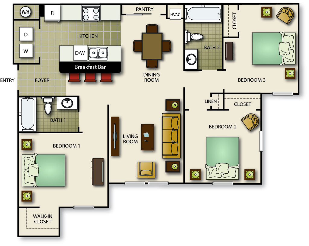 3 Beds, 2 Baths, 1035 sq ftAvailable NowModel Gallery