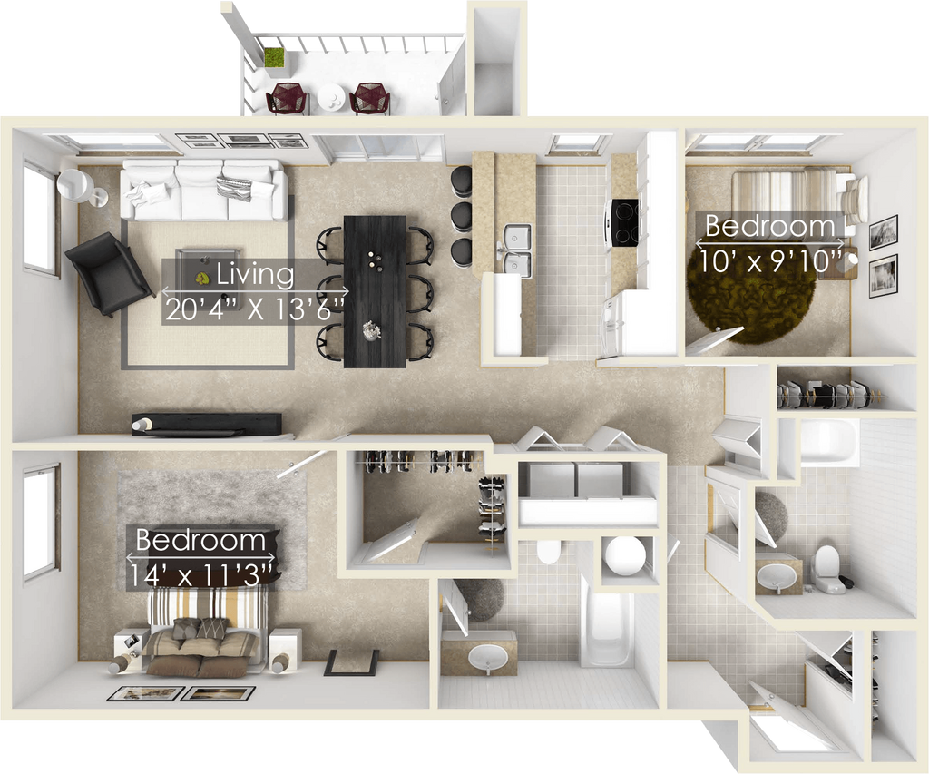 Apartment Model: HONEYSUCKLEFrom $1,7811 Bedroom, 1 Bath, 707 sq ftAvailable Now![]()