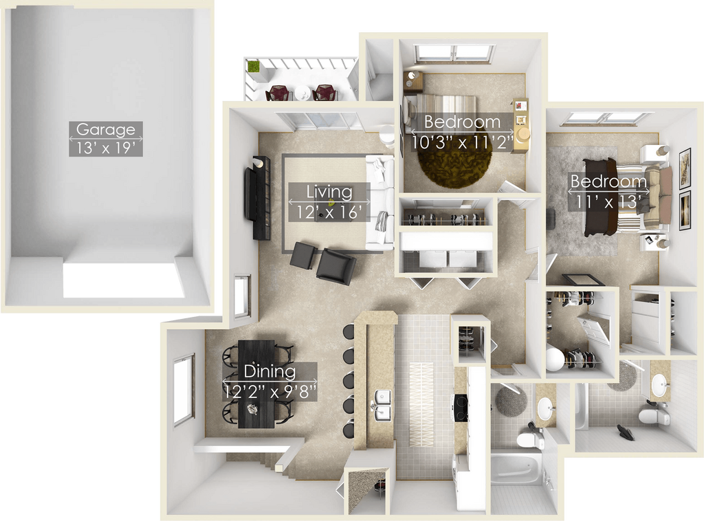 2 Beds, 1 Bath, 867 sq ftAvailable NowCheapest 2 BedroomThis is the cheapest 2 Bedroom at this PropertyModel Gallery