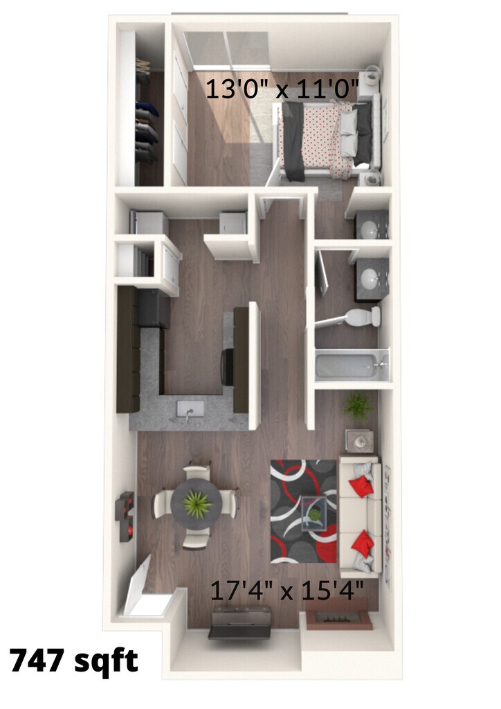 1 Bed, 1 Bath, 747 sq ftAvailable NowModel Gallery