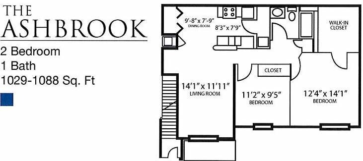 Apartment Model: AshbrookFrom $1,4292 Bedroom, 1 Bath, 1029-1149 sq ftUnavailable![]()
