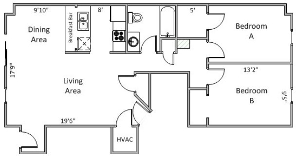 2 Bedrooms 1 Bath - Floorplan 1 ![]()