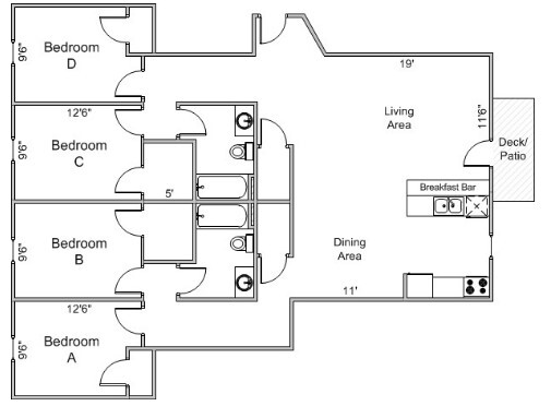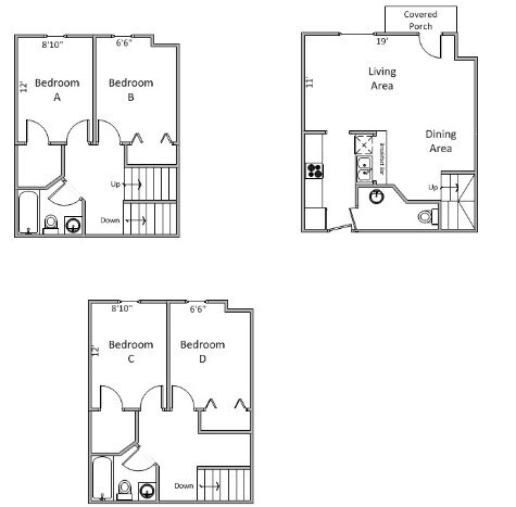 Apartment Model: 4 Bedrooms 2 Bathroom4 Bedroom, 2 Bath, 1250-1325 sq ftUnavailable![]()
