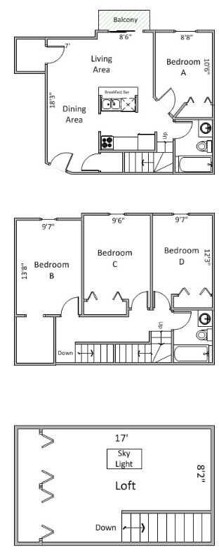 Availability Date Unit Sq Ft Unavailable 4x2 Townhome 1250-1325 sq ft 4 Bedrooms 2 Bathroom