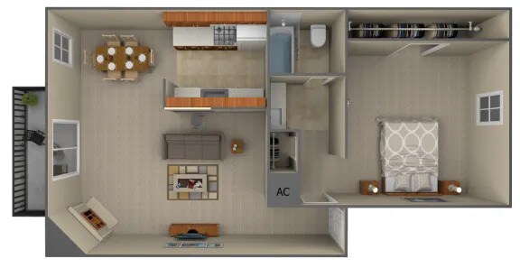 Apartment Model: A1From $6991 Bedroom, 1 Bath, 536 sq ftAvailable Now![]()