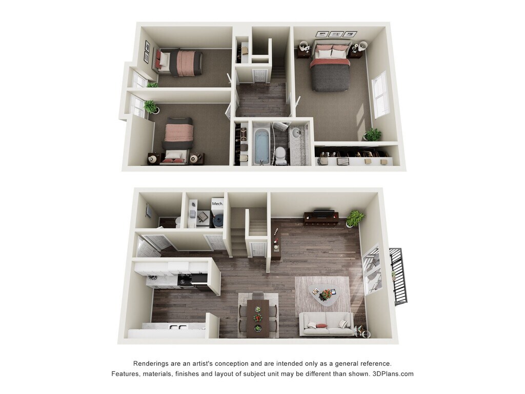Apartment Model: 3 Bed 1.5 BathCall For Rates3 Bedroom, 1.5 Bath, 1100 sq ftUnavailable3 Bed 1.5 Bath - Floorplan 1 3 Bed 1.5 Bath