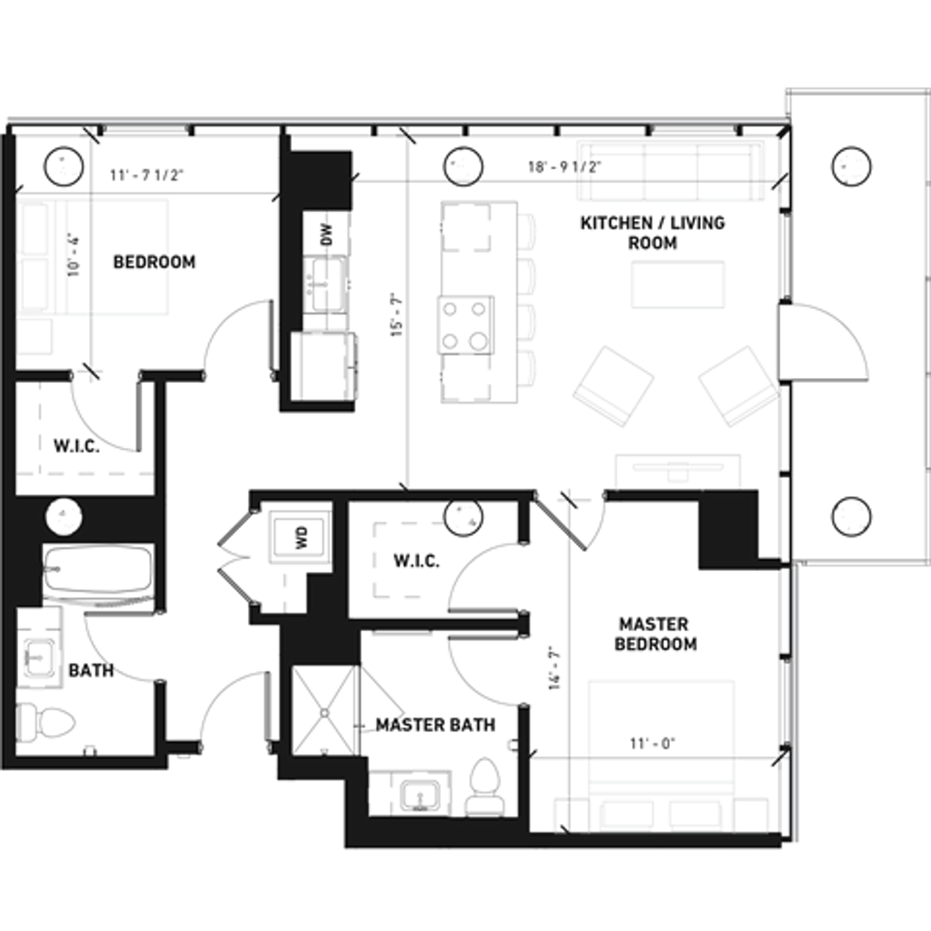 Apartment Model: 2x2B6$4,3842 Bedroom, 2 Bath, 1025 sq ftUnavailable![]()
