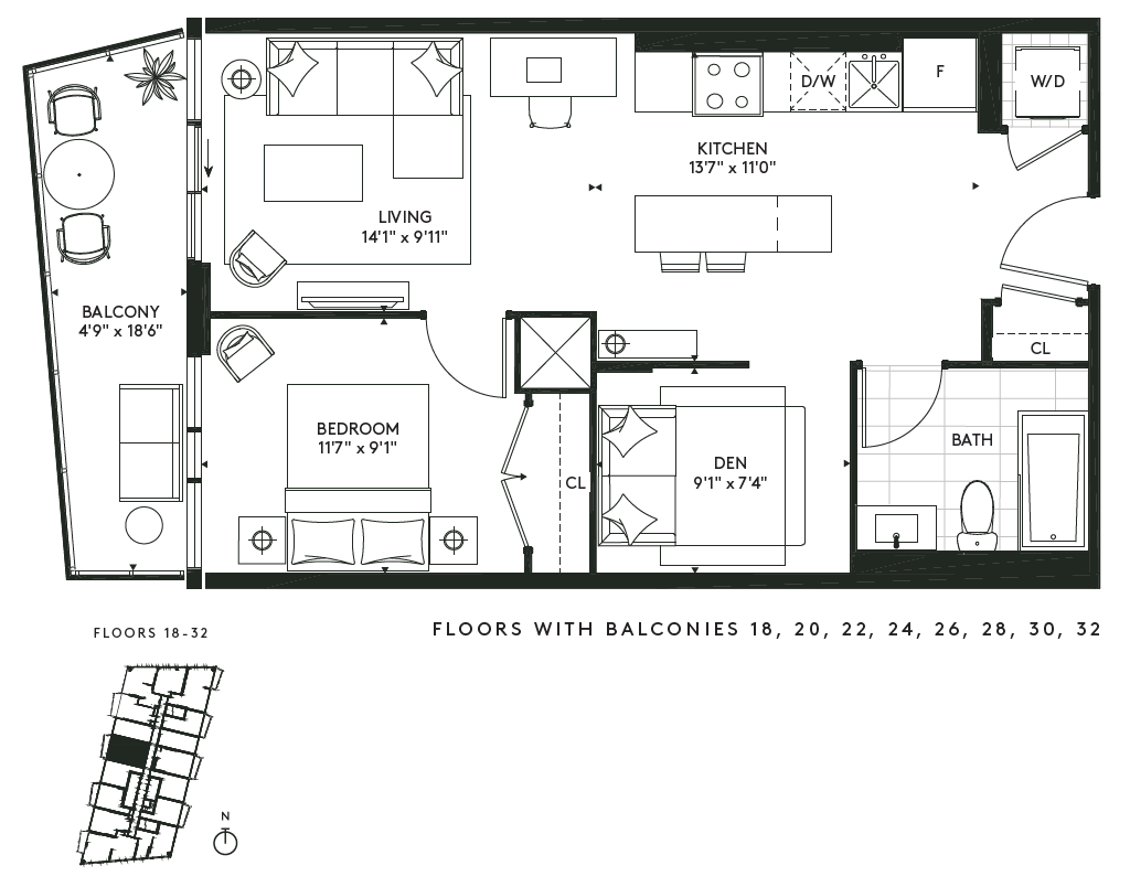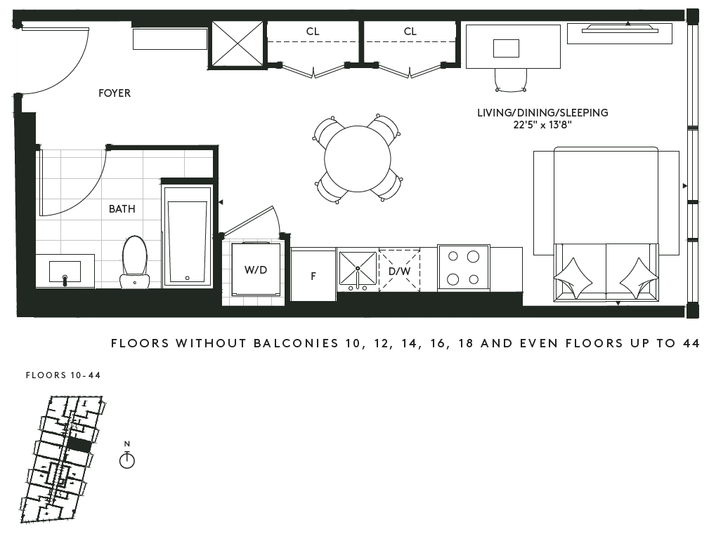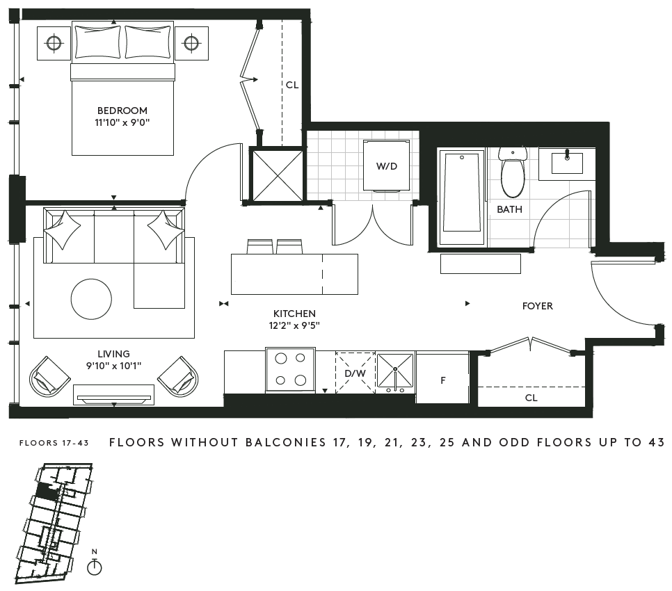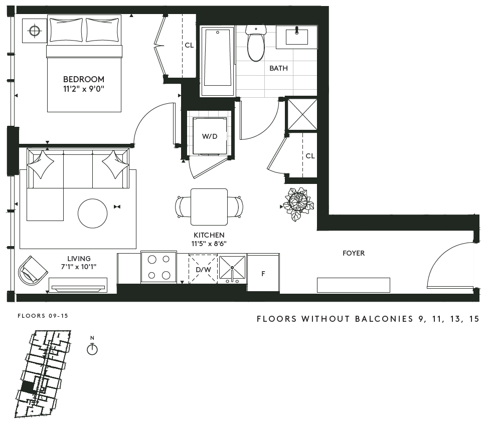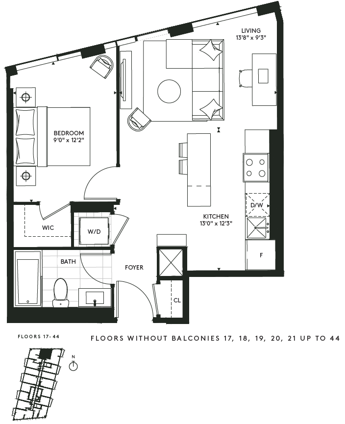 The Freemont V - Floorplan 1 Apartment Unit: 1318Apartment Model: The Freemont V$2,5021 Bedroom, 1 Bath, 525 sq ftAvailable NowThe Freemont XII
