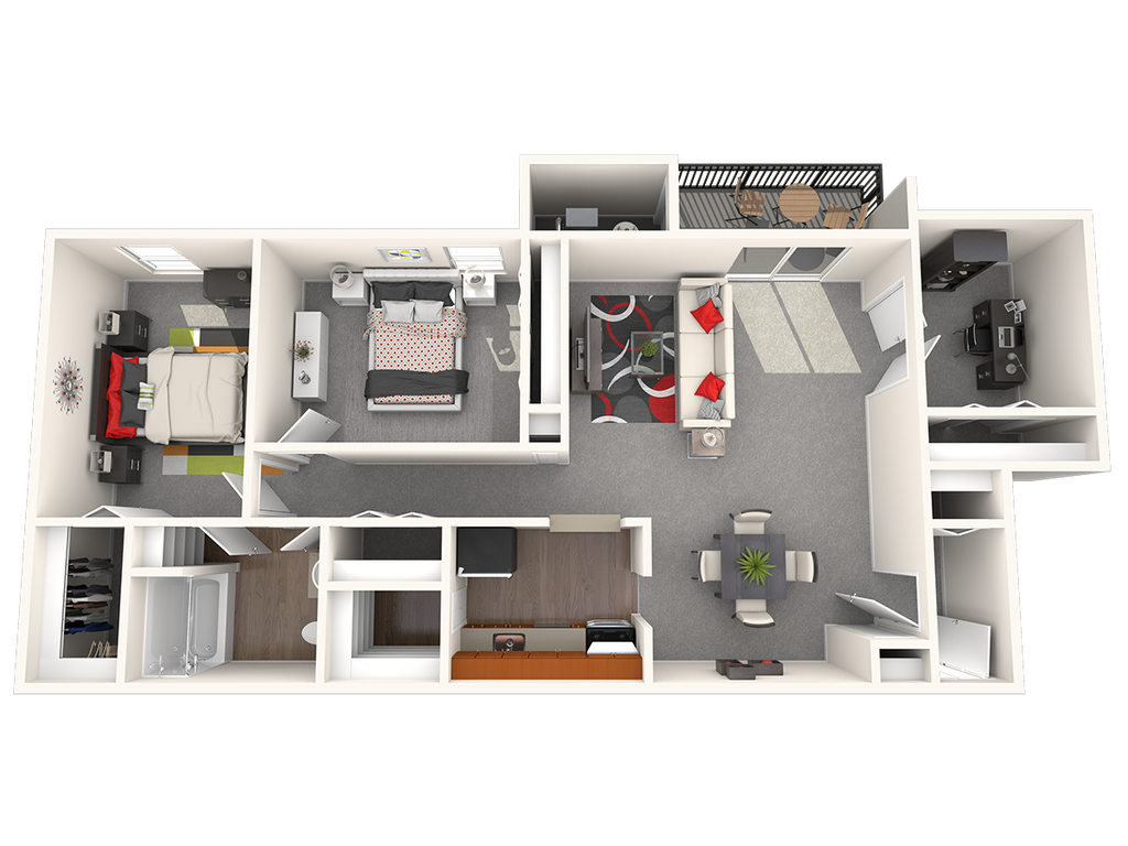 Apartment Model: 2 Bed 1 Bath DenFrom $1,5302 Bedroom, 1 Bath, 1333 sq ftAvailable Now![]()