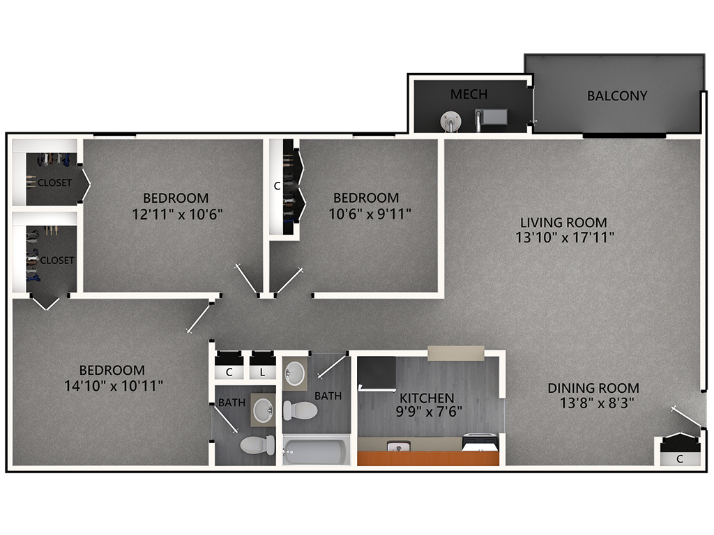 1 Bed, 1 Bath, 832 sq ftAvailable Dec 12Model Gallery