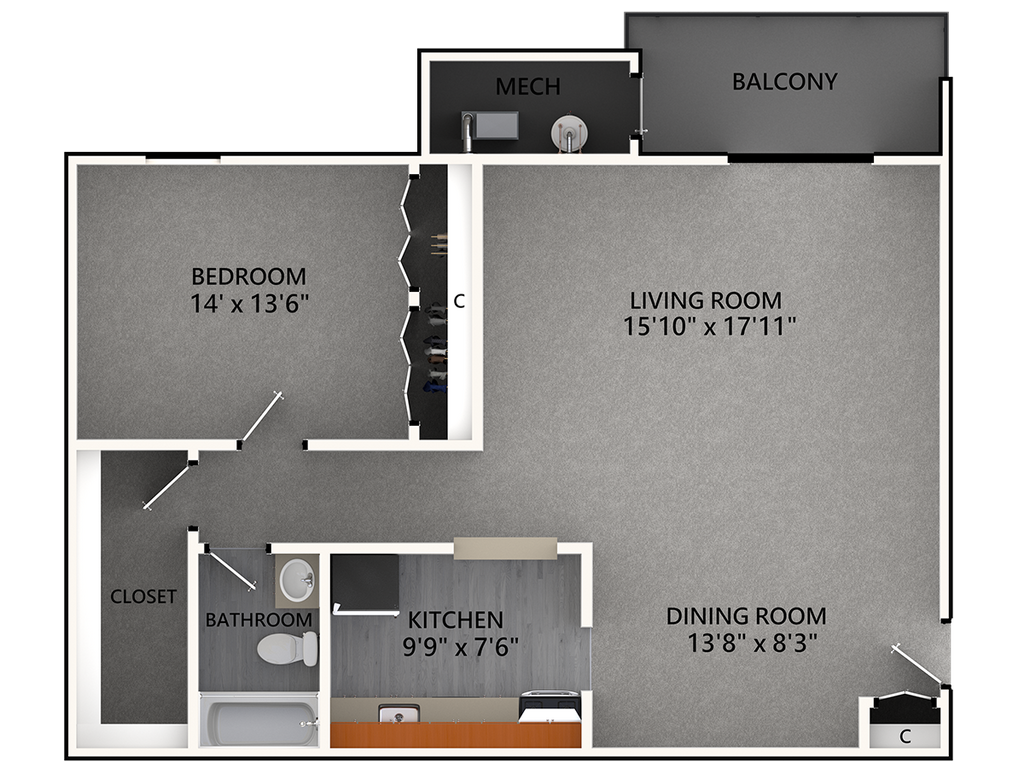 1 Bed, 1 Bath, 724 sq ftAvailable NowModel Gallery