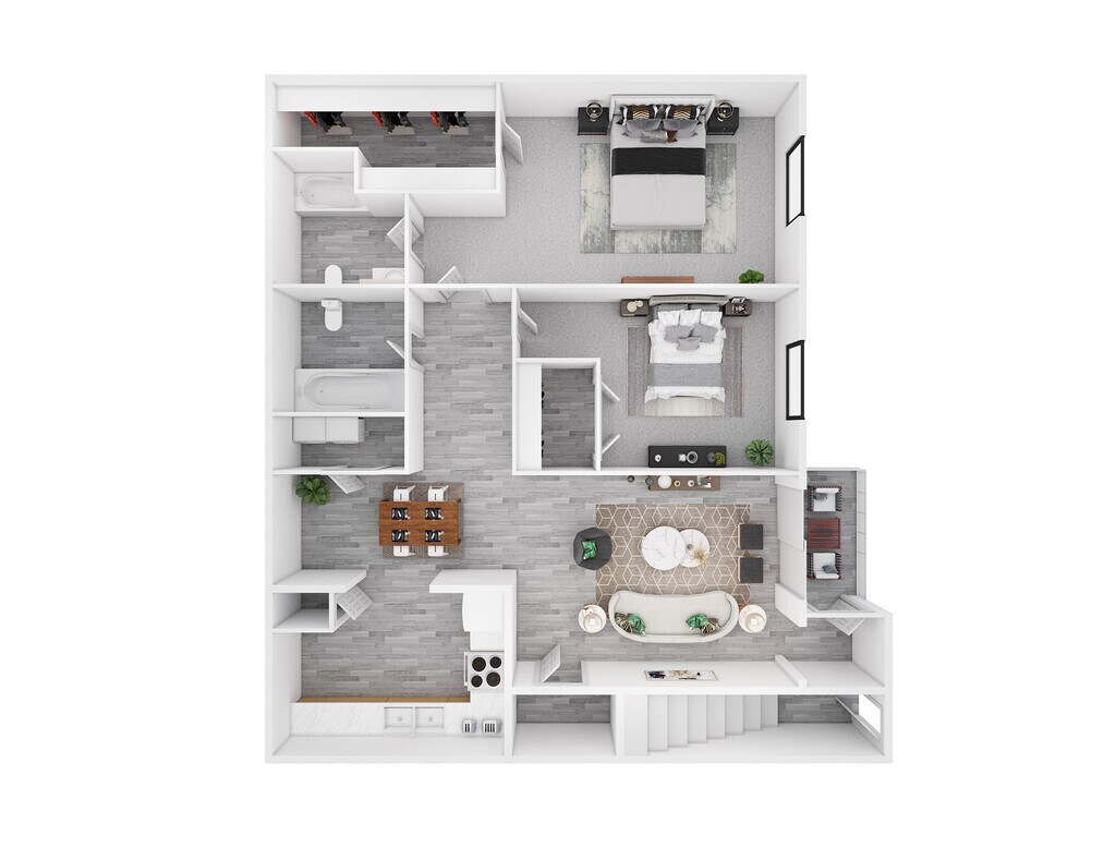 2 Beds, 2 Baths, 1000 sq ftAvailable NowModel Gallery