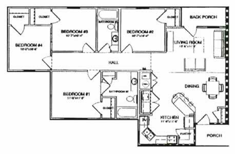 Availability Date Unit Sq Ft Unavailable 4 Bedroom, 2 Bathroom 1398 sq ft Apartment Model: 4 Bedroom, 2 Bathroom4 Bedroom, 2 Bath, 1398 sq ftUnavailable4 Bedroom, 2 Bathroom - Floorplan 1