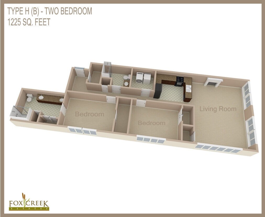 Estates - 1 Bed, 1 Bath - 775 Square Feet - Floorplan 1 Fox - 1 Bedroom, 1.5 Bath - 937 Square Feet