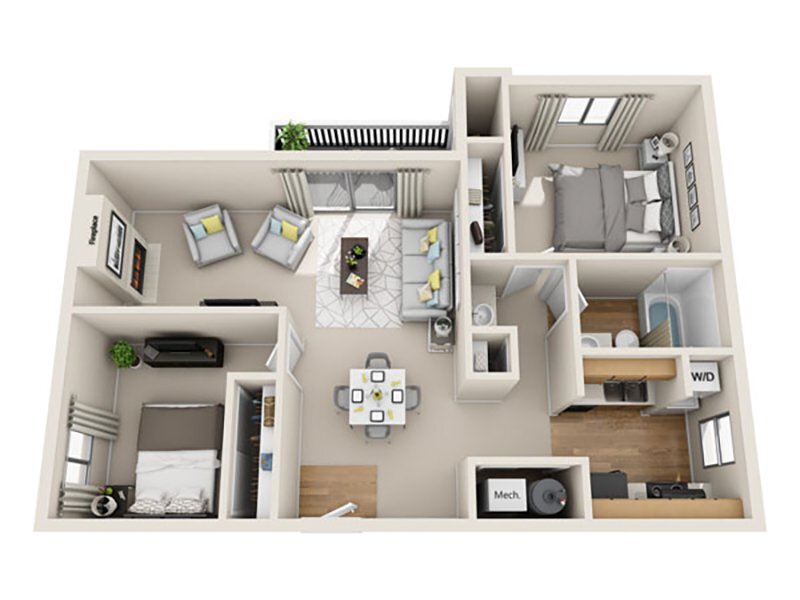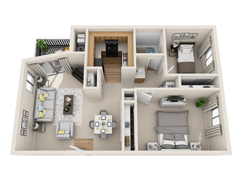 2 Beds, 1 Bath, 829 sq ftAvailable NowModel Gallery