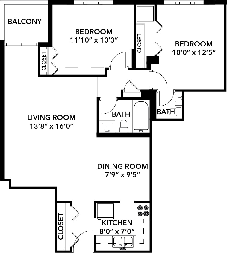 2 Beds, 1.5 Baths, 1000 sq ftLargest 2 BedroomThis is the largest 2 Bedroom at this PropertyModel Gallery