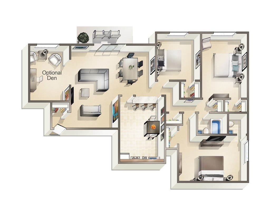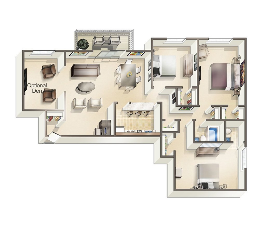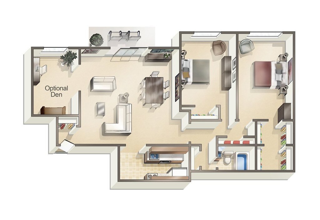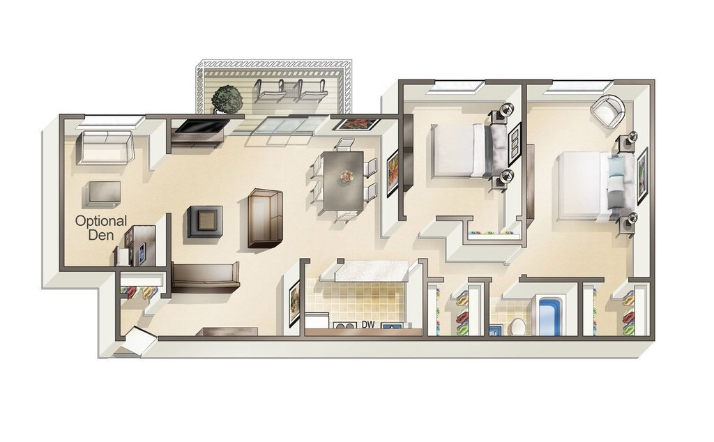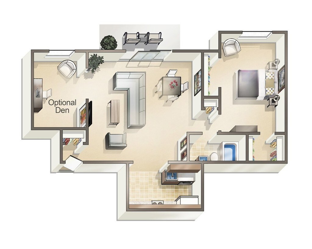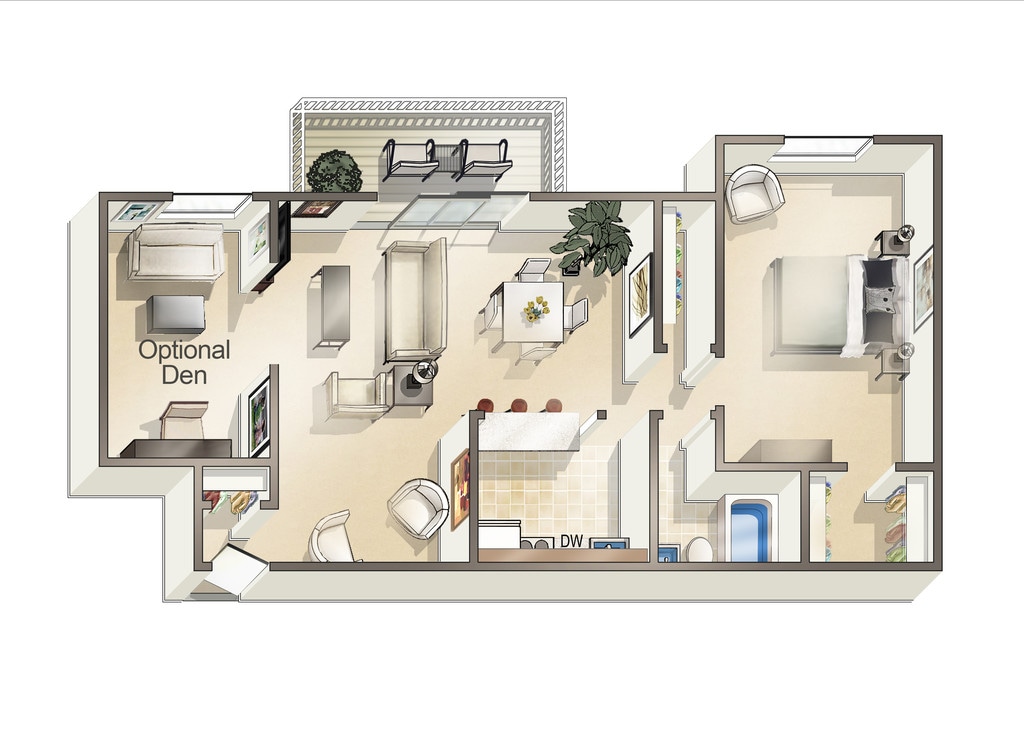 1 Bed, 1 Bath, 752 sq ftModel Gallery