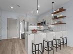 - Light Wood Cabinets with Some Open Shelving and Wi