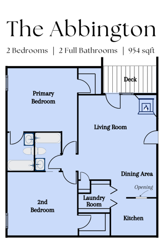 Abbington - Floorplan 1 Apartment Unit: Building 7-9080Apartment Model: Abbington$1,5802 Bedroom, 2 Bath, 954 sq ftAvailable November 29, 20253 Bedrooms