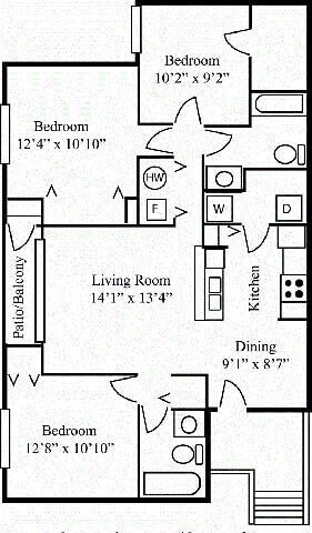 2 Bed 2 Bath - Floorplan 1 3 Bedrooms