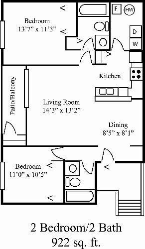 Apartment Model: 2 Bed 2 BathCall For Rates2 Bedroom, 2 Bath, 922 sq ftUnavailableFloor plans are artist's rendering. All dimensions are approximate. Actual product and specifications may vary in dimension or detail. Not all features are available in every rental home. Prices and availability are subject to change. Base rent is based on monthly frequency. Additional fees may apply, such as but not limited to package delivery, trash, water, amenities, etc. Deposits vary. Please see a representative for details.