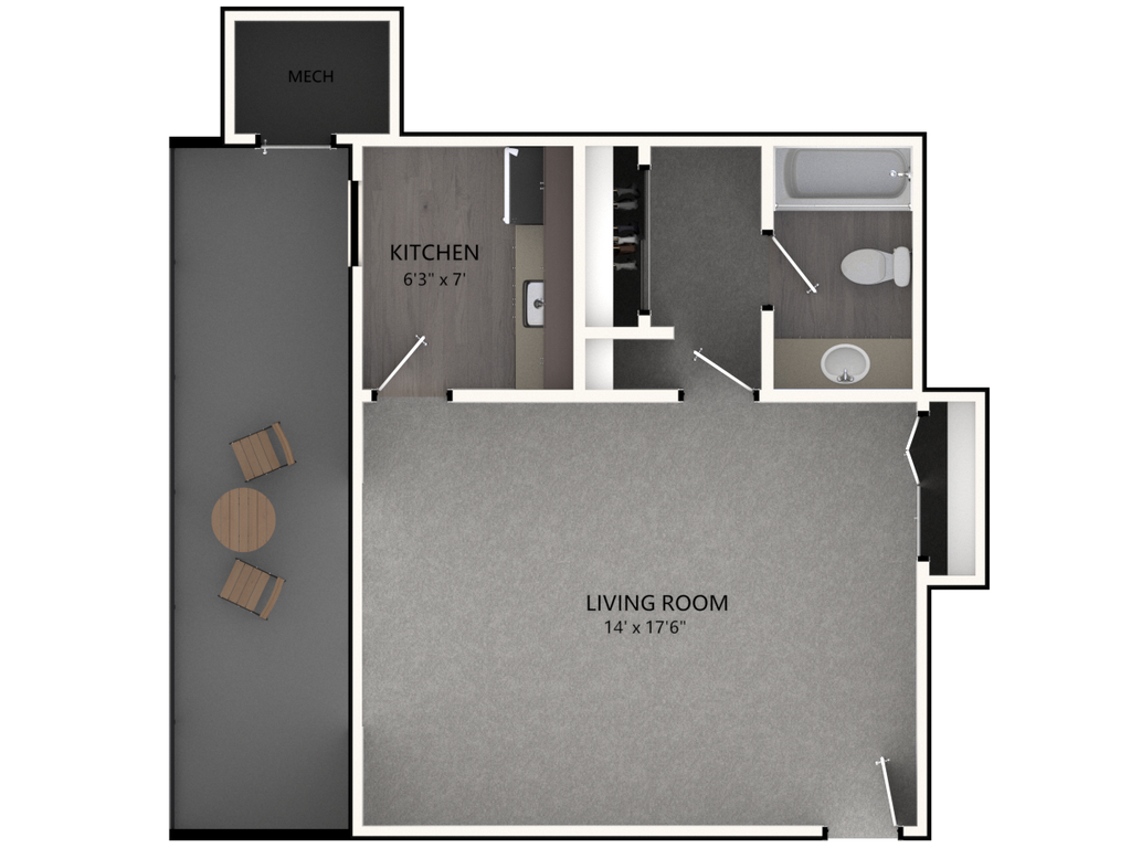 Studio, 1 Bath, 396 sq ftAvailable NowModel Gallery