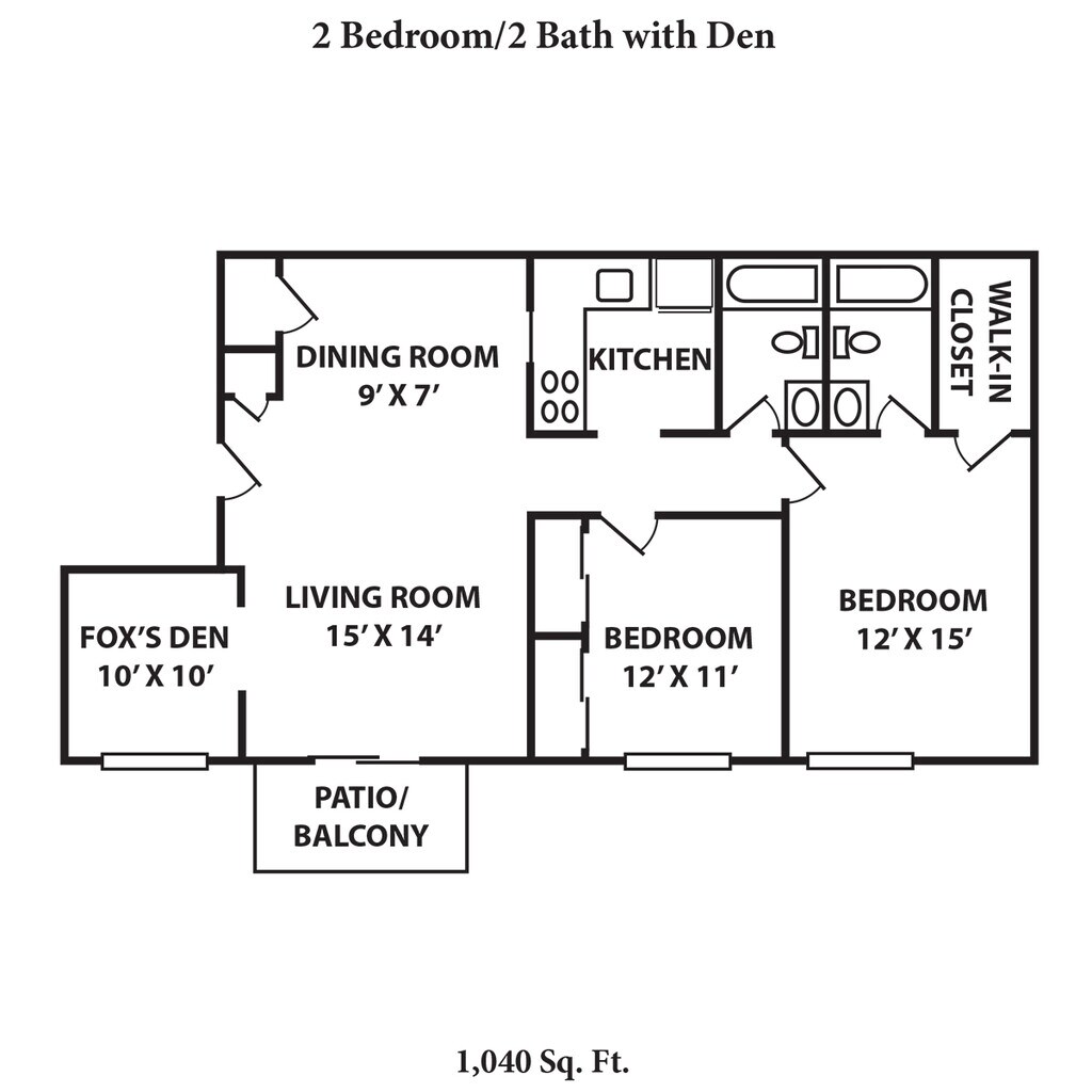 2 Bedrooms 2 Bath with Den - Floorplan 2 ![]()
