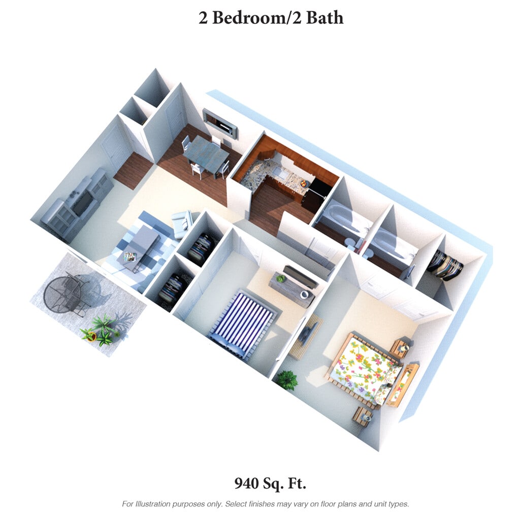 2 Beds, 2 Baths, 940 sq ftAvailable NowModel Gallery