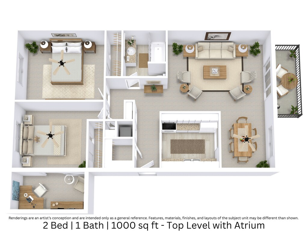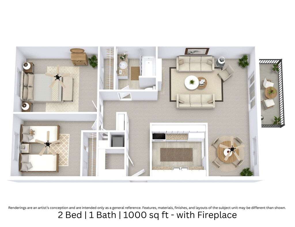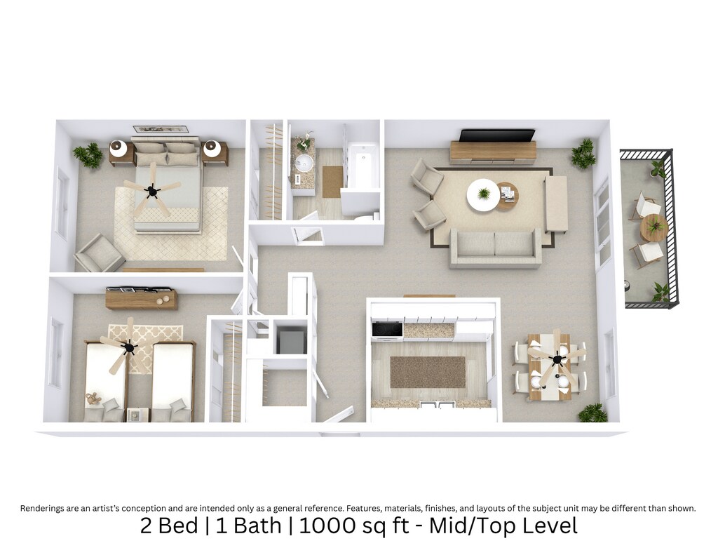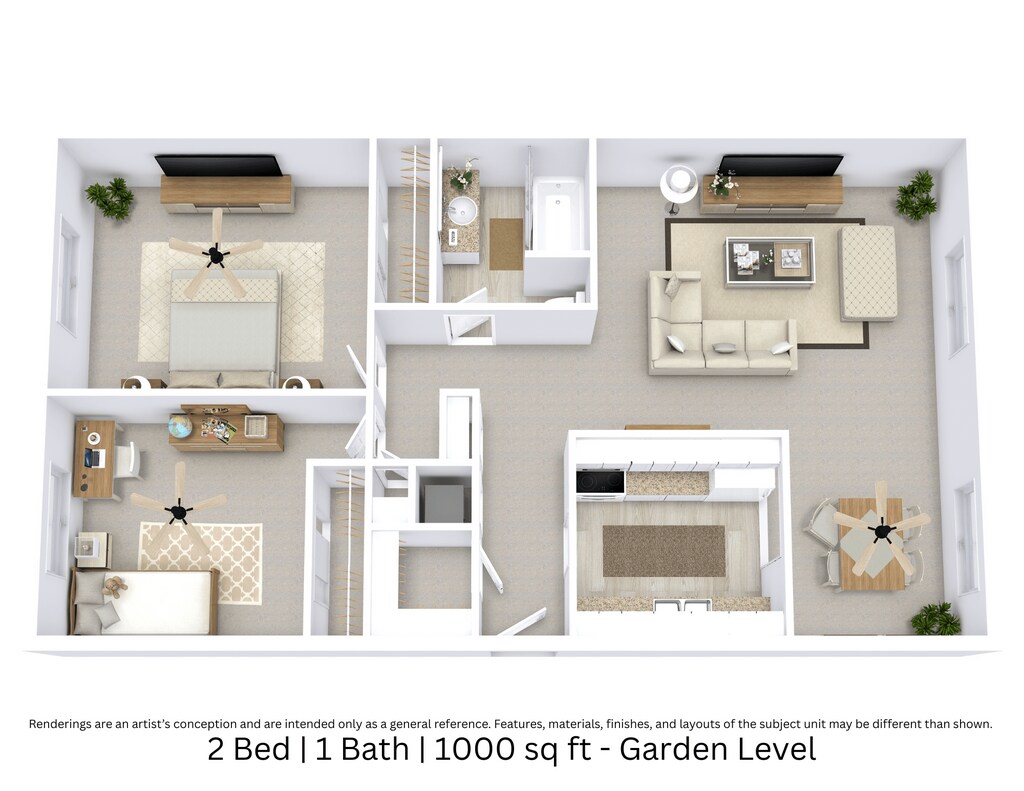 2 Beds, 1 Bath, 1000 sq ftModel Gallery
