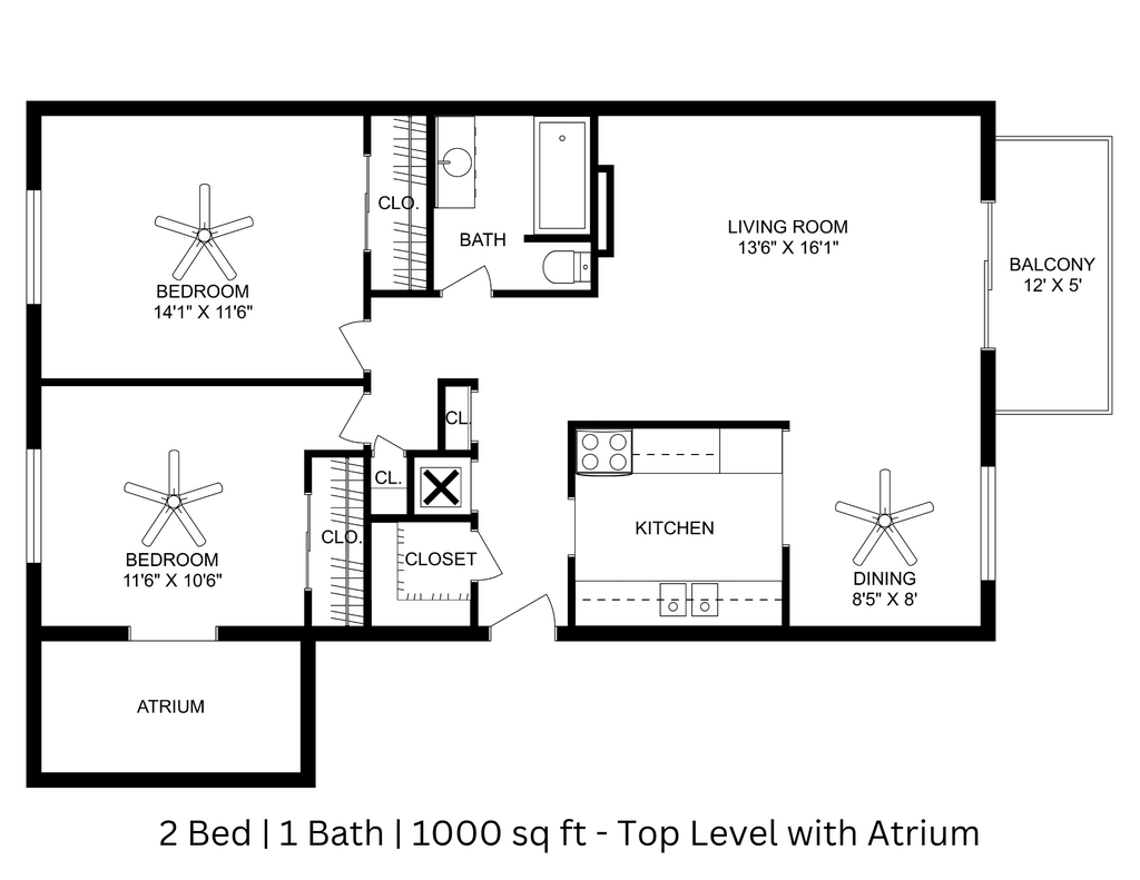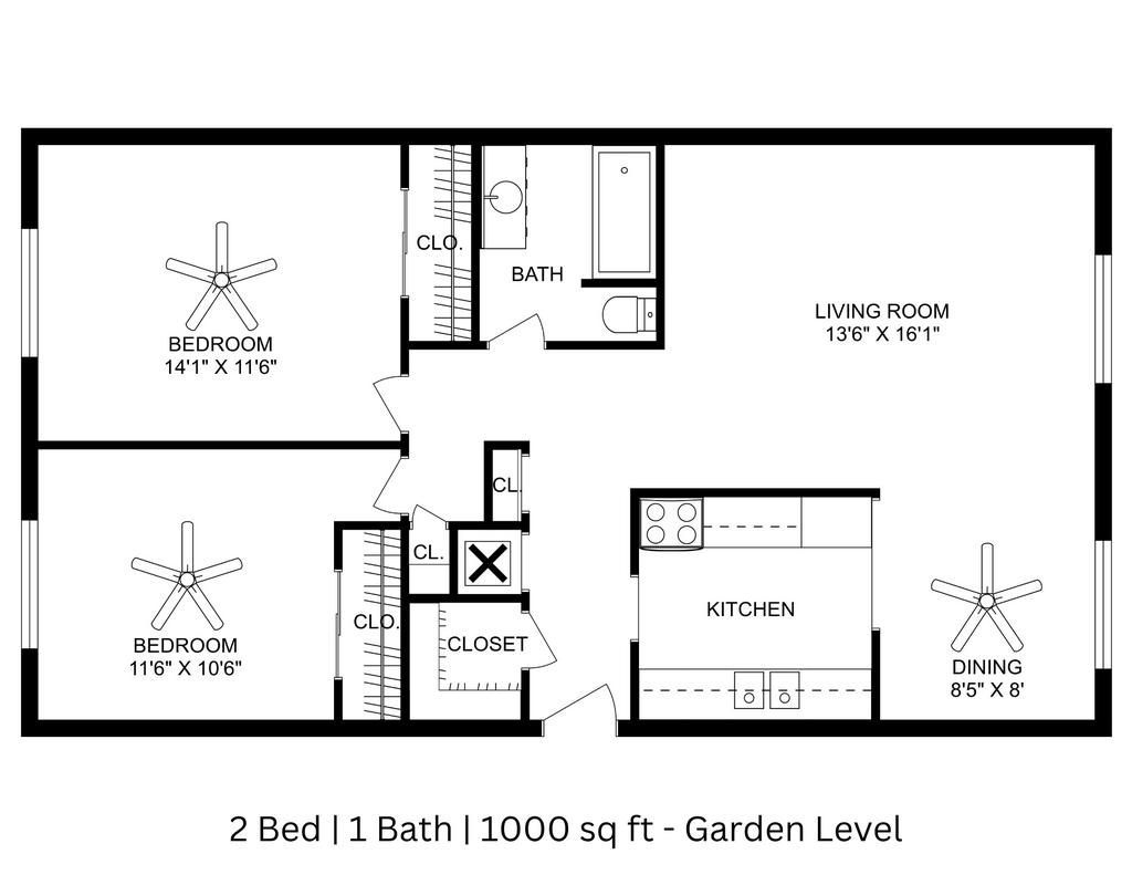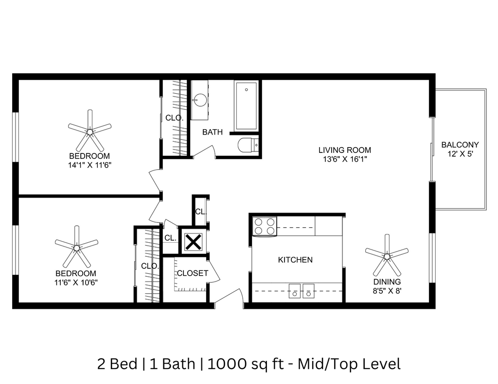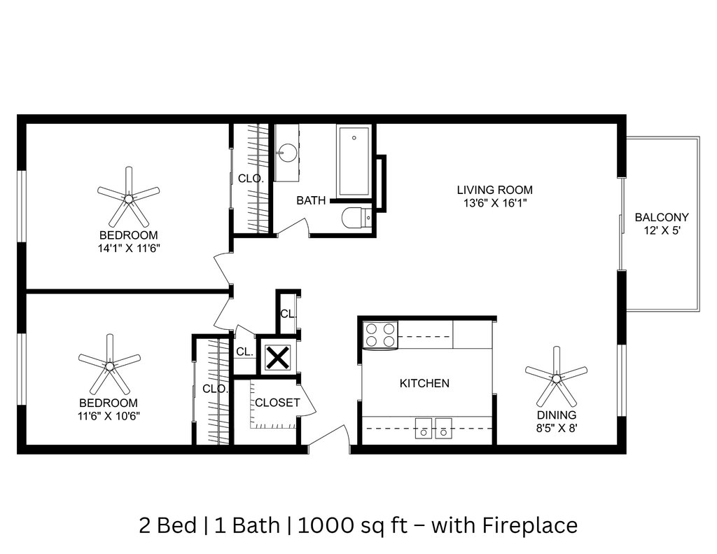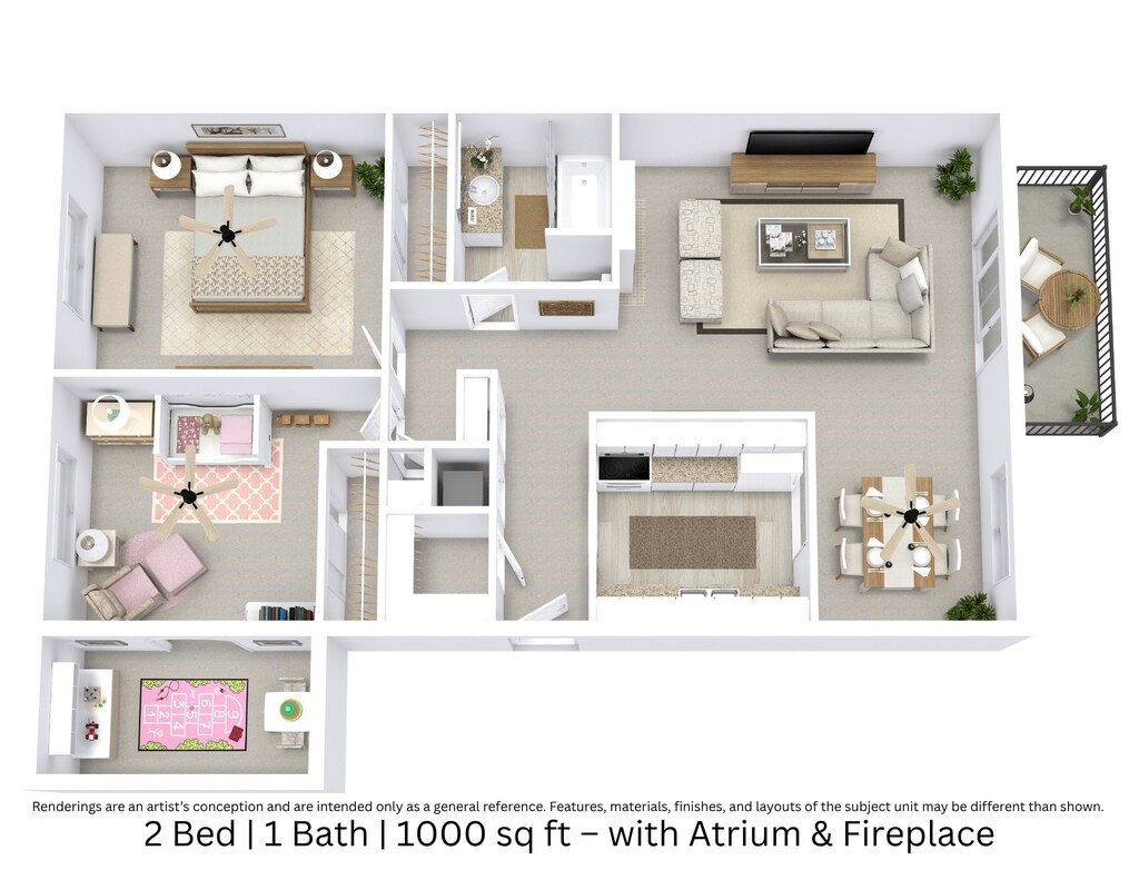 2 Beds, 1 Bath, 1000 sq ftModel Gallery