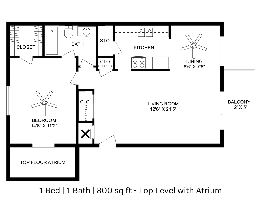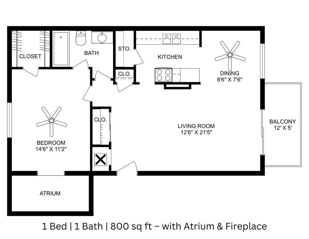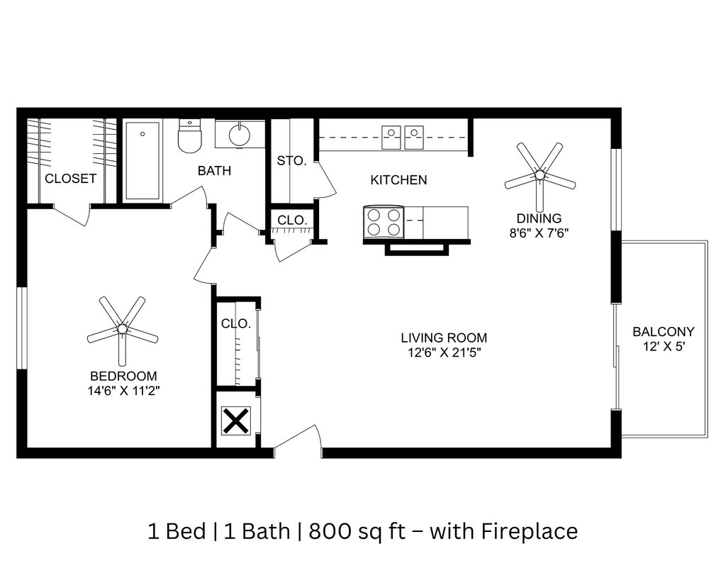 1 Bed - 1 Bath - Floorplan 1 ![]()