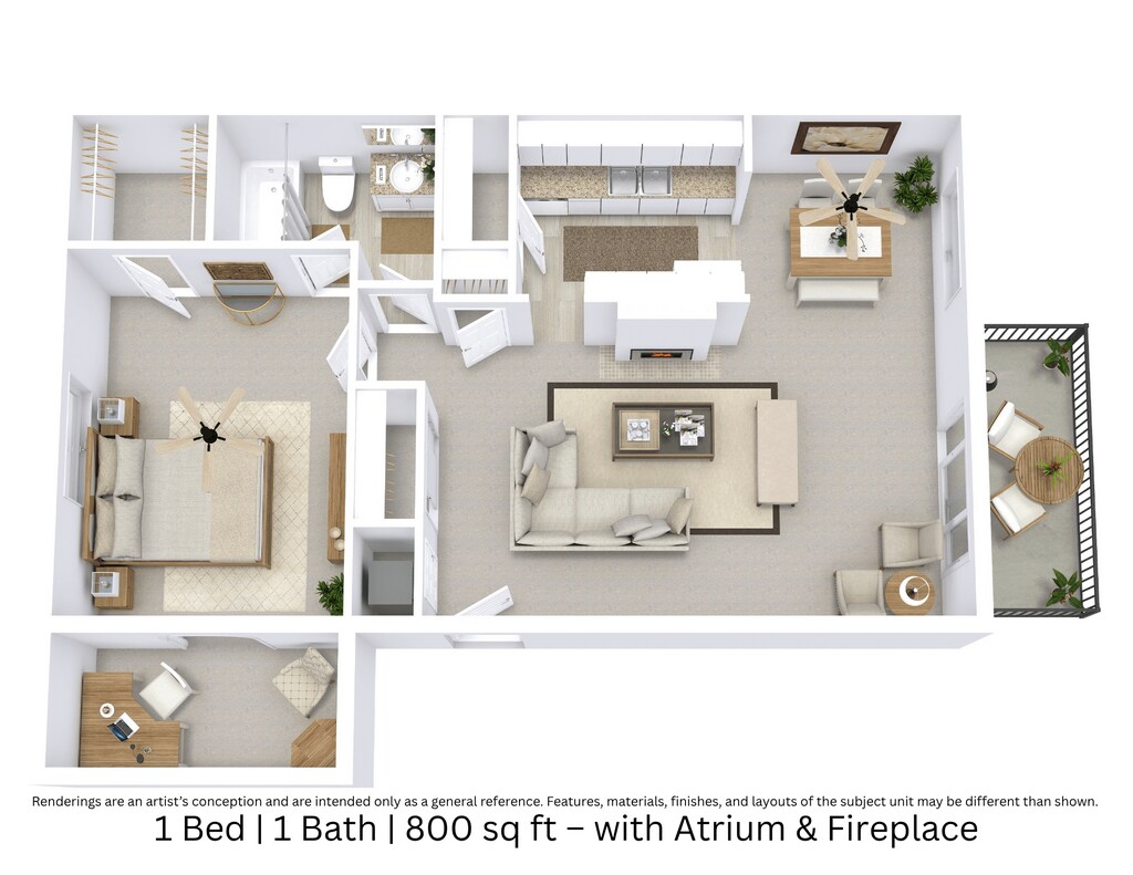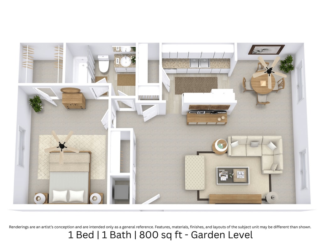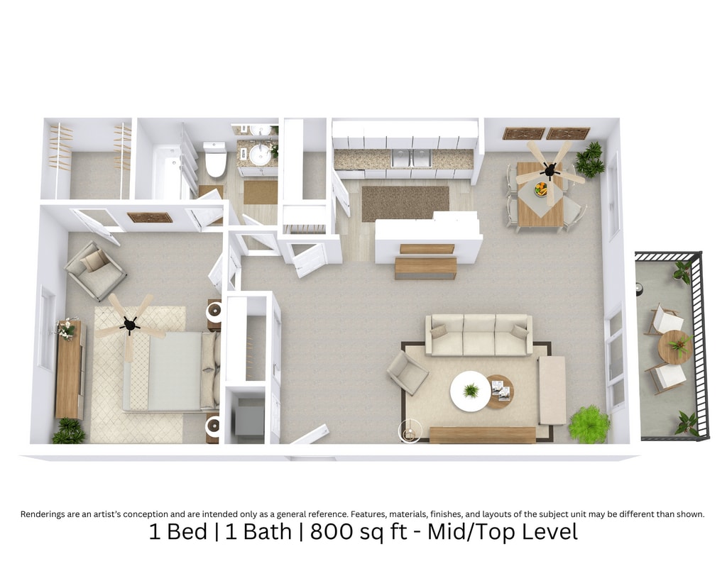 1 Bed, 1 Bath, 800 sq ftModel Gallery