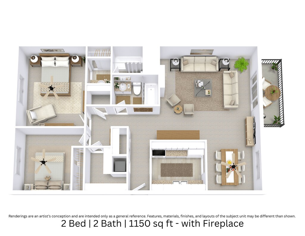Apartment Model: 2 Bed - 2 BathFrom $1,1102 Bedroom, 2 Bath, 1150 sq ftAvailable Now![]()