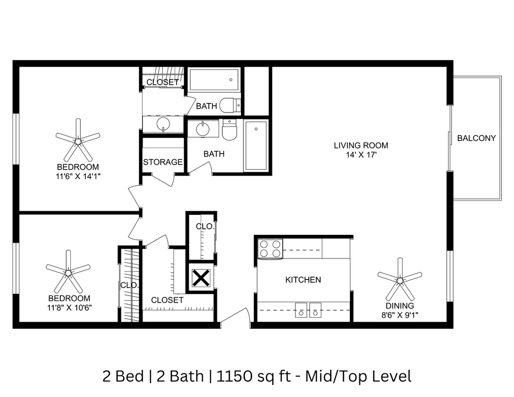 2 Bed - 2 Bath - Floorplan 2 ![]()