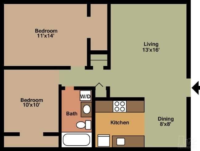 Apartment Model: Two Bedroom x 1 Bath$7952 Bedroom, 1 Bath, 839 sq ftAvailable Now![]()