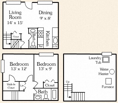2 BR 1.5 BATH / TOWNHOUSE - Floorplan 2 ![]()